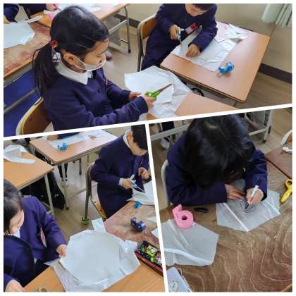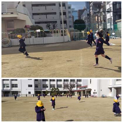 今回は自分で作った「凧」を持って運動場を走り抜けました。