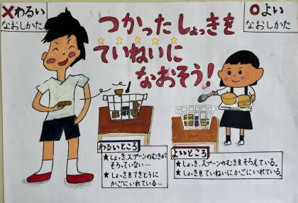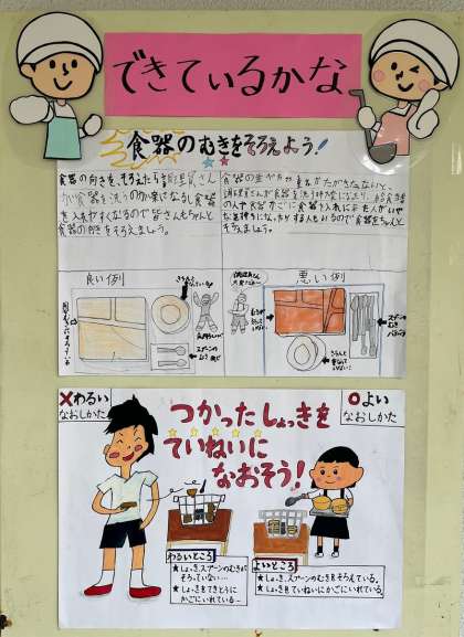 給食委員会でポスターを作成し、給食室前に掲示しています。