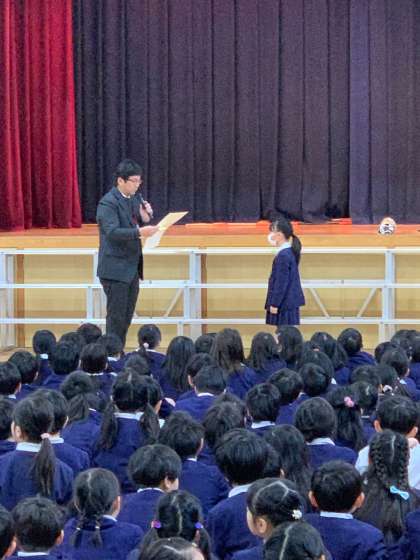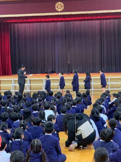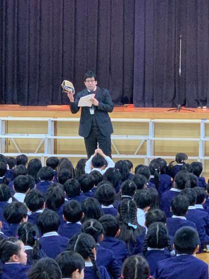 メジャーリーガーの大谷選手から寄贈されたグローブと手紙を校長先生からご紹介があり、大谷選手にとって目標達成のためのシンボルがグローブであるようにみなさんにとって目標達成のためのシンボルはありますか?というお話がありました。