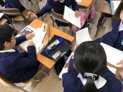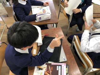 曲を聞いて感じたことを、班で交流する際には、ワークシートを見ながら積極的に話す姿が見られました。