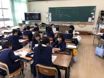 有名な曲だったので「どこかで聞いたことがある。」「知ってる。」という声があがっていました。フルートとハープが使われていることを聞き分けたり、曲の調子が変化するところを見つけたりしました。