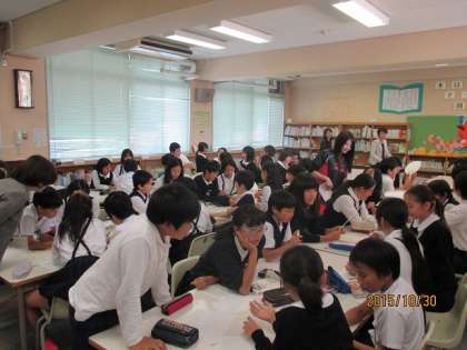 「なるほど!お天気・環境実験教室」が今日(10月30日)実施されました。お天気キャスターの方が講師となって、雲を発生させる実験やエアコンの環境問題について考える授業が行われました。映像や実験、そして屋上でのエアコン見学など2時間があっというまでした。NPO法人気象キャスターネットワークの方々、本当にありがとうございました。