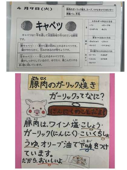 給食セット(ナフキンとコップ)を忘れずに持ってきましょう。