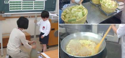 給食の焼きそばを題材に、給食ができるまでの様子を学習しました。