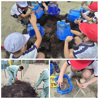 2年生になり、トマトのお世話が始まるので土の整理をしました。