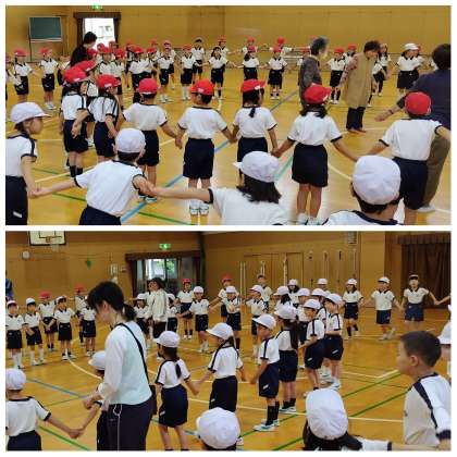 運動会に全校児童で踊ります。