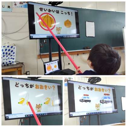 どちらの方が大きいか、大型ディスプレイを活用し学習しました。