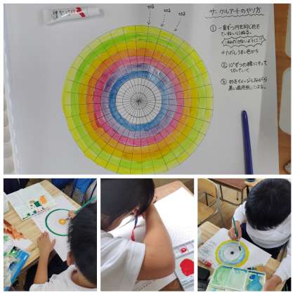 絵の具を使ってサークルの中を丁寧に色を塗りました。