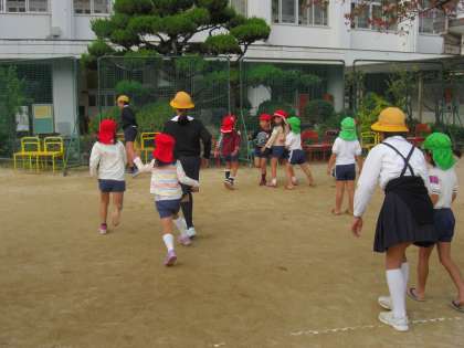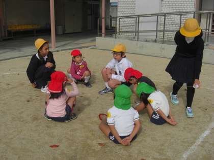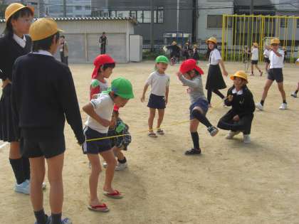 ばら組さんが、滝川小学校の5年生と同心保育園のライオン組さんと、小学校の校庭で一緒に遊びました。”ゴム跳び”や”Sけん””しっぽとり”などで体をいっぱい動かして、たくさん「ガッツ貯金」をしました。