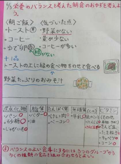 6年 栄養バランスを考えた朝食のおかずを考えよう。