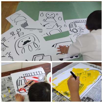 のびのび学級では自分で塗りたい絵柄や色を選ぶこと(選択すること)を大切に学習しています。