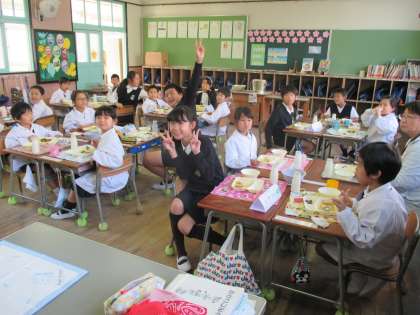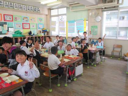 16日、今日は交流給食の日。1年と6年、2年と5年、3年と4年でそれぞれ6〜12名がお互いのクラスに行って給食を食べました。移動したクラスでは、名札を用意して待っていてくれました。楽しくおしゃべりしながら、おいしくカレーライスをいただきました。