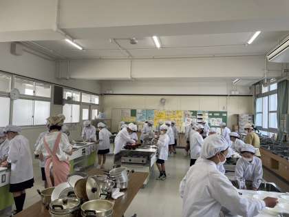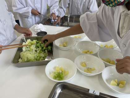 火曜日に2クラス共調理実習をしました。今回は「ゆでる」をテーマにほうれん草のおひたしと、ジャガイモとブロッコリーとキャベツのサラダを作りました。前回よりも工程が複雑でしたが、しっかり立てた計画表のおかげでテキパキと動くことができました!今回のソースは中華でしたが、オーロラソースなどほかのソースでもお家で試してくださいね。