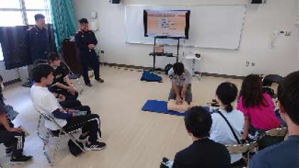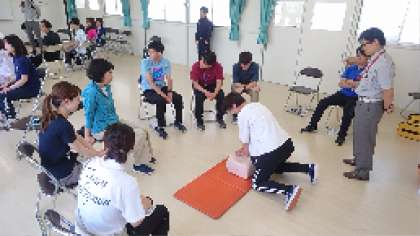 一次救命処置の手順について確認し、胸骨圧迫やAEDの使い方の練習をしました。