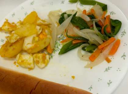 ジャガイモと卵のチーズ炒めを