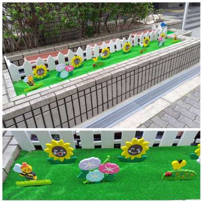 本物の花ではないけれど、可愛らしい花や生き物がいっぱいでとても良い気持ちになります。