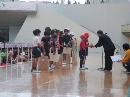 4年生・6年生とも3位決定戦に進出。4年生は、6戦目。勝ちパターンを覚えたかのように、次々にあてていき、11−6の圧勝で3位となりました。6年生は、準決勝のサドンデスの疲れが見え、健闘しましたが、破れました。4年生は3位の表彰を、6年生は3位までは届きませんでしたが、優秀チームに贈られる「元気アップ賞」をいただきました。
