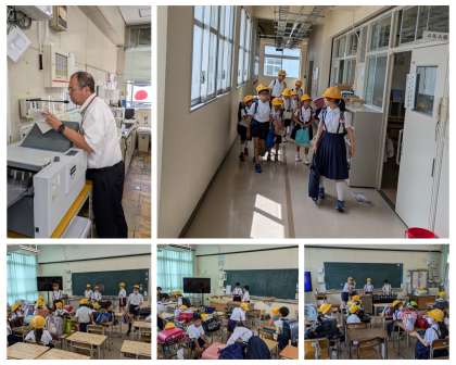 「区内で事件が起こり、安全に下校するために分団で下校する」という想定で訓練を行いました。毎朝登校している分団なので、顔見知りのメンバーですが、下校となると一度それぞれの教室に集合し、点呼をおこないます。どの教室に行くかわからなくなる子もおり、訓練を通して課題も明らかになってきました。ひきつづき改善に取り組み、子どもたちの安全確保に努めていきます。