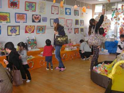 11月29日はこどもまつりでした。身近な素材や自然物を使って自分なりにイメージを広げて作った作品や感動したことや楽しかったことなどをのびのびと描いた絵画をたくさんの方に見ていただきました。今しか表現できない子どもたちの世界を感じていただけたかと思います。