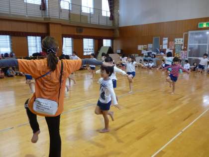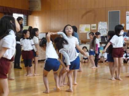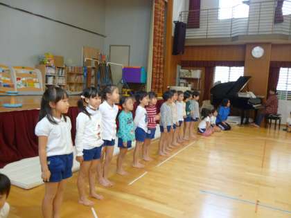 同心保育園で、堀川幼稚園、同心保育園、滝川幼稚園の年長児の交流会がありました。プレイルームで、リズム遊びをしたり、声を合わせて歌を歌ったりして楽しみました。