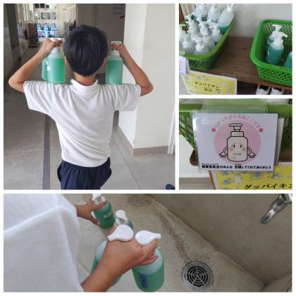 健康委員会は、みんなが手を洗う時に使うシャボネットを毎週木曜日のお昼休みに交換してくれています。