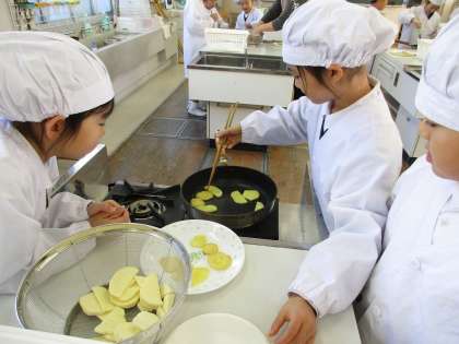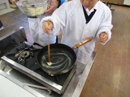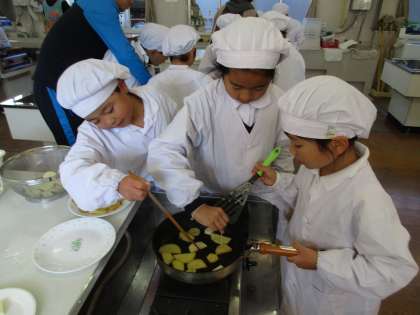 収穫したさつまいもを2年生がバターでいためて、いただきました。みんな火力を調整しながら、楽しく作りました。とてもおいしかったです。