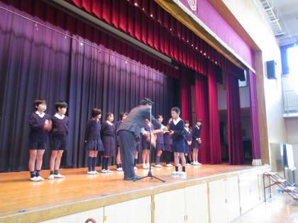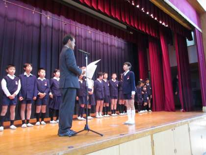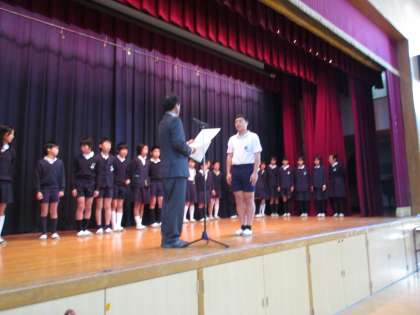 12月7日(月)朝会があるのは3週間ぶりです。この間に、児童は2つのドッジボール大会で、優秀な成績を納めましたのでその表彰を行いました。元気アップドッジでは、4年B組が3位、6年A組が元気アップ賞(準決勝敗退)をいただきました。この大会に向けての4年A組、5年A組の健闘も称えられました。北区のドッジボール大会では6年生準優勝、5年生3位、3年生優勝とこれまた素晴らしい成績でした。本当によくがんばりました。