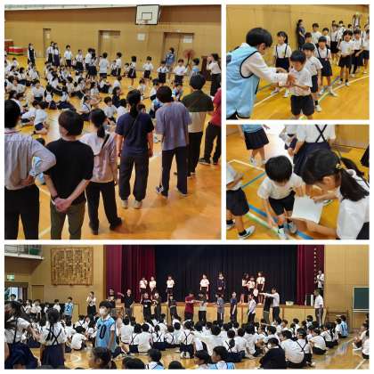 紙の上にピンポン玉を乗せて、後ろの人にどんどん渡していくゲームです。