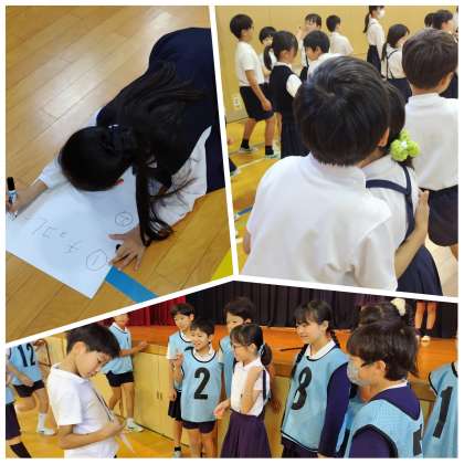 6年生の班長が、集会委員会から出されたお題(言葉)を自分の班に伝えます。