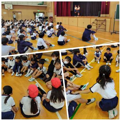 帰校後、講堂に集合して終わりの会・ふりかえりをしました。