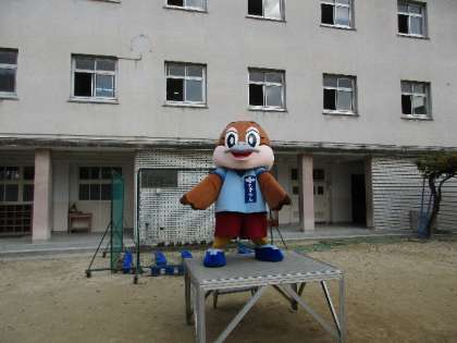 みんな大興奮でした。もずやんの手(羽)でたくさんの児童が頭をなでてもらいました。もずやん、応援に来てくれてありがとう。