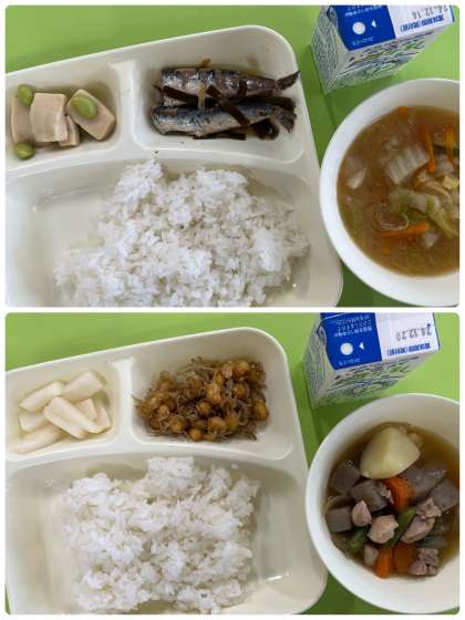 月曜日の「いわしのしょうが煮」と「高野どうふの煮もの」、木曜日の「じゃこ豆」などです。