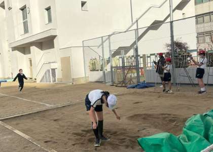 工夫して走り幅跳びの練習をしています。