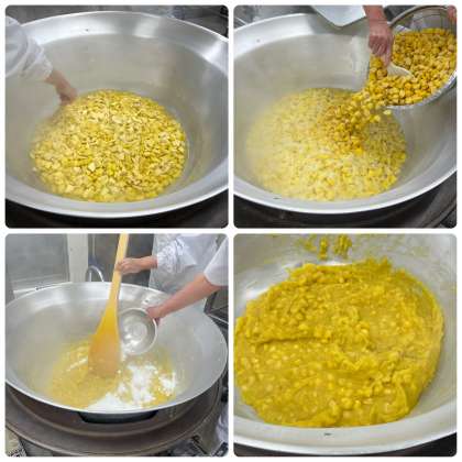 ゆっくり釜で煮て、きれいに仕上げるには火加減やまぜ加減を気をつけなければいけません。きれいに、おいしくできていましたね。