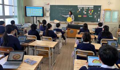 発表ノートで自分の食べたいピザを作り、お店の人とお客さん役でペアトークをしました。