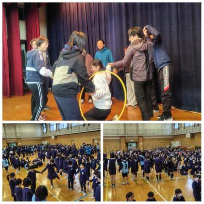 音楽が鳴っている間、フラフープを隣の人へどんどん回していきます。