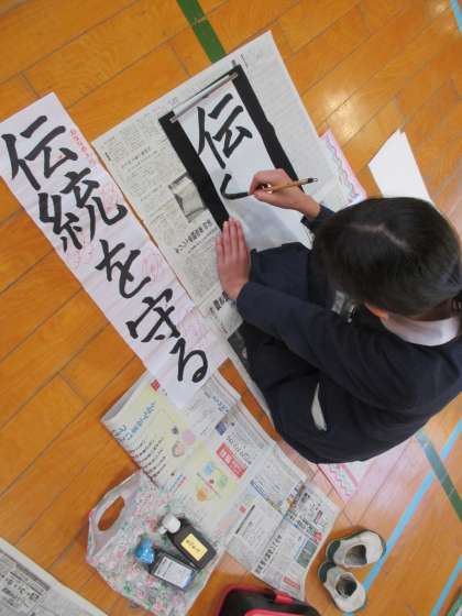 1月12日13日に3〜6年生が、講堂で書き初めをしました。新年の初頭にあたり、気持ちを込めて書きました。