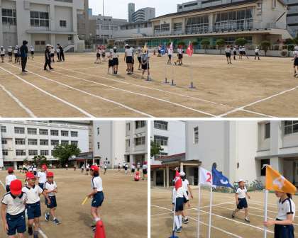先生方がきれいに白線を引いてくださった運動場では、各学年が早速かけっこやリレーの練習を始めました。本番で最高の力が発揮できるようしっかり練習をしていきます。