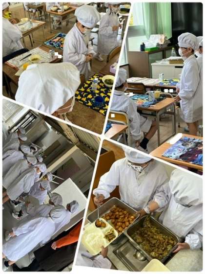 みんなで協力して、少しずつ上手に給食当番もできるようになっています。給食室前でも元気よく挨拶しています。