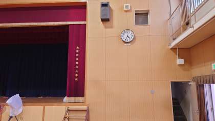 講堂兼体育館の前方に時計が設置されました。