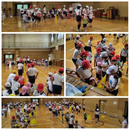 ボールを協力して運んだり、6年生が運動会で使ったフラッグで一緒に踊ったり楽しい時間を過ごすことができました!