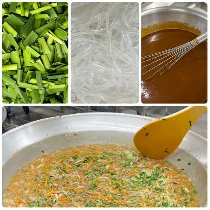 いろどりに加えたにらは全部で2キロちょっと。給食室で切っていると、にらの香りが廊下までしてきます。今日は中華だよ!のサインです。