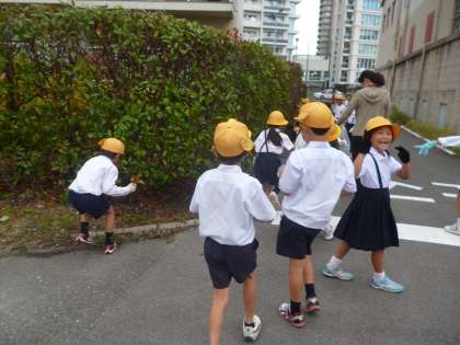 21日(月)掃除の時間から5時間目を使って、大阪マラソンクリーンアップ作戦に参加しました。低学年は造幣局との間や国道2号線沿いを、中学年は谷町筋や浜下公園、高学年は滝川公園を掃除しました。滝川公園を掃除した高学年は、「意外にきれいだな、」という感想をもらしていました。地域の方々が、いつも掃除をしてくださっていることがよくわかったようです。国道2号線沿いや谷町筋も歩道はきれいですが、植込みあたりにごみが多くあったようです。少しでも町の美化に貢献できたのではないかと思います。来る27日は、たくさんの人が大阪の街を気持ちよく走ってくれることでしょう。