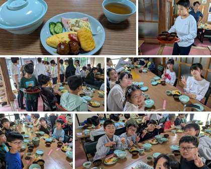 午前の行事をがんばれるように、しっかり朝ごはんを食べます。昨夜のようなツワモノはいませんが、みんな元気にたくさん食べています。