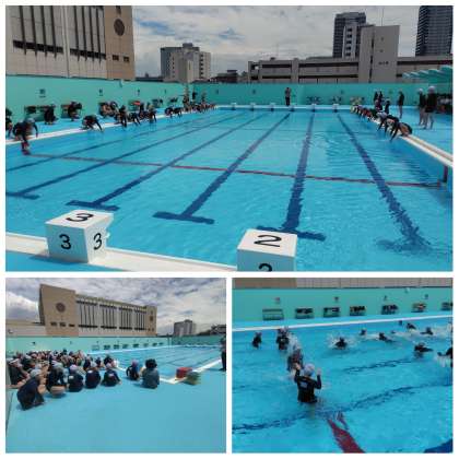 音楽に合わせて泳ぐリズム泳に取り組んでいます。