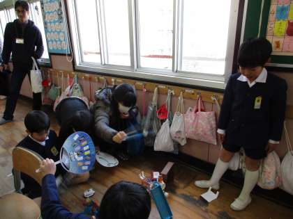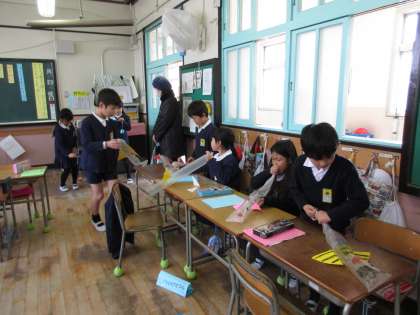 2年生は自分たちで作ったおもちゃの作り方を説明し、実際に遊んでもらいました。