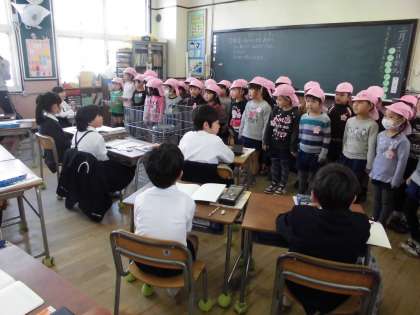 さくらぐみさんが、滝小2年生に昨日のお礼を届けに行きました。
