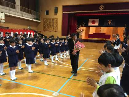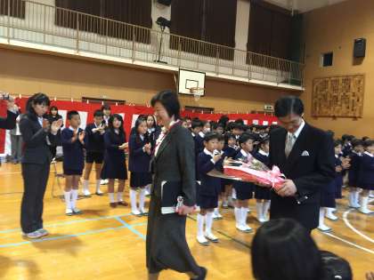 4月1日(金)中辻前校園長の離任式と民辻新校園長の着任式を行いました。