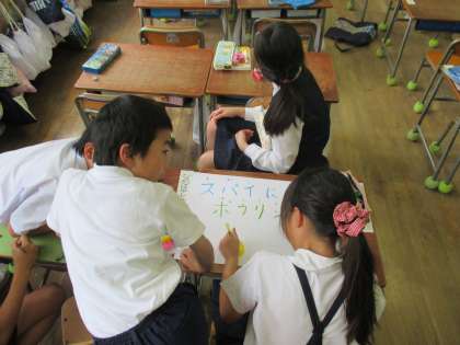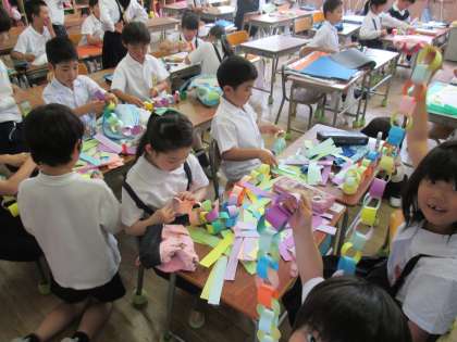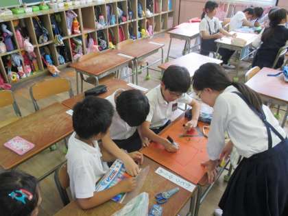 今日の5・6時間目はふれあい班活動です。月末の滝川ふれあいカーニバルにむけてのお店作りがスタートしました。1・2年生も高学年に頼るのではなく、自分たちでできることに取り組みます。高学年はポスターや看板作りなどに頑張っていますね。