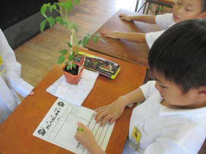 「収穫できたら、なんのお料理にしようかな〜?」と、もう食べる気満々です!いっぱい実がつくように、しっかりとお世話しましょうね!
